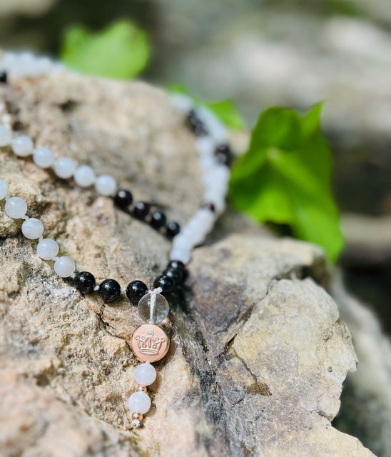 Die Entstehung meiner Mala war für mich eine magisch schöne berührende Reise. Maju hat sich dem Prozess mit so viel Liebe, Mich-Sehen und Mich-Spüren hingegeben, dass ich meinen Kraftsatz in jeder einzel geknüpften Perle spüren kann.